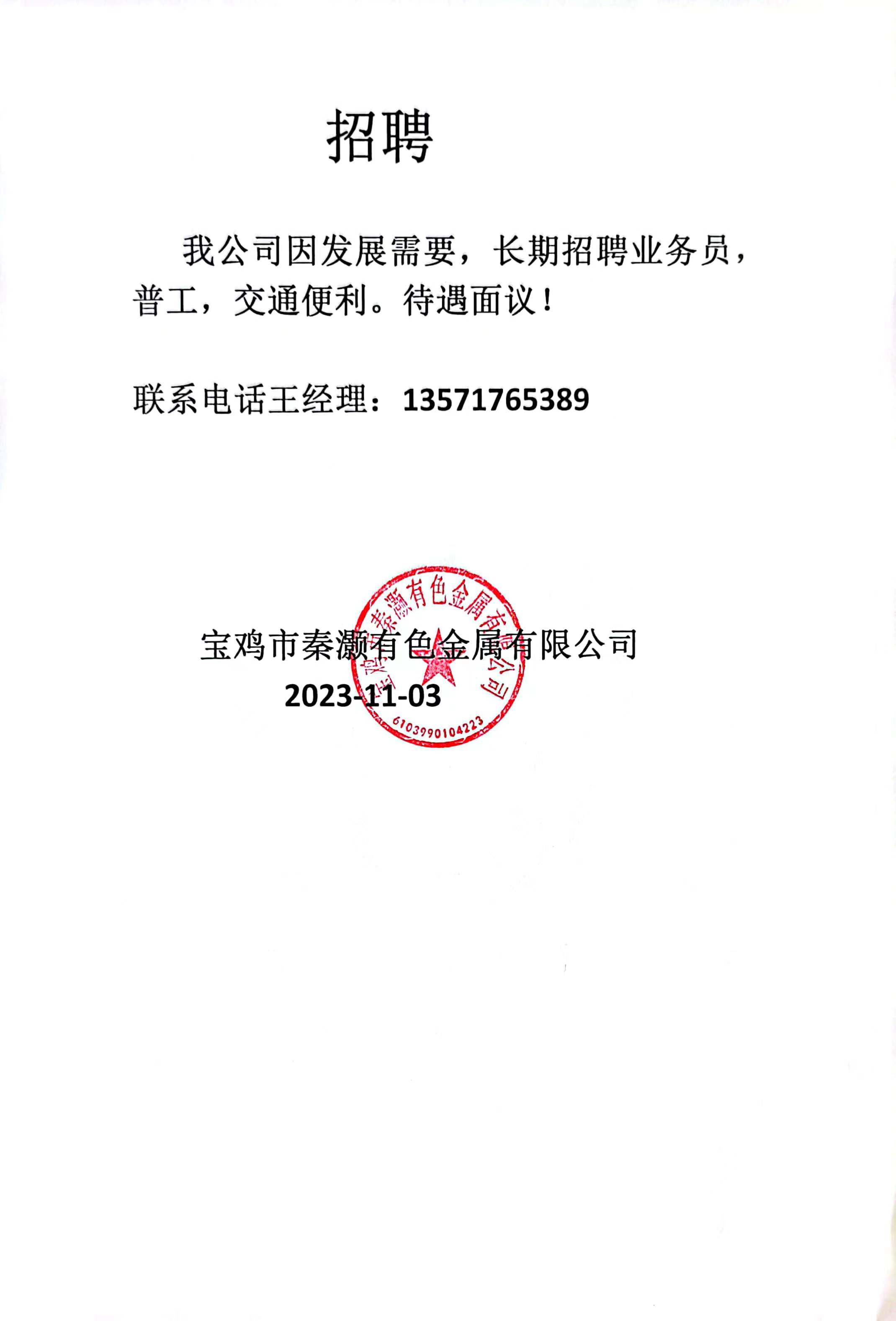 招聘 因公司發(fā)展需要,長期招聘業(yè)務,普工,交通便利! 待遇面議! 聯(lián)系電話王經(jīng)理:13571765389 |